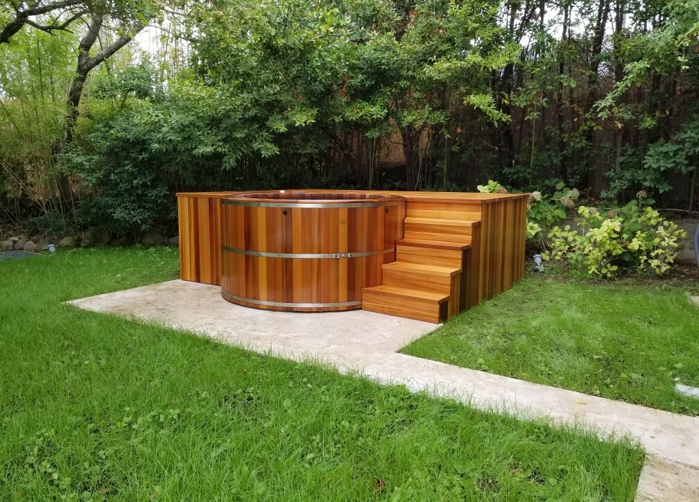 Round Wood-Fired Hot Tubs with Submersible Stove